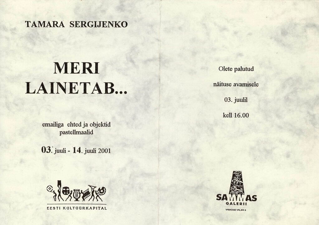 Näitus MERI LAINETAB Sammas galeriis 03.07.-14.07.2001